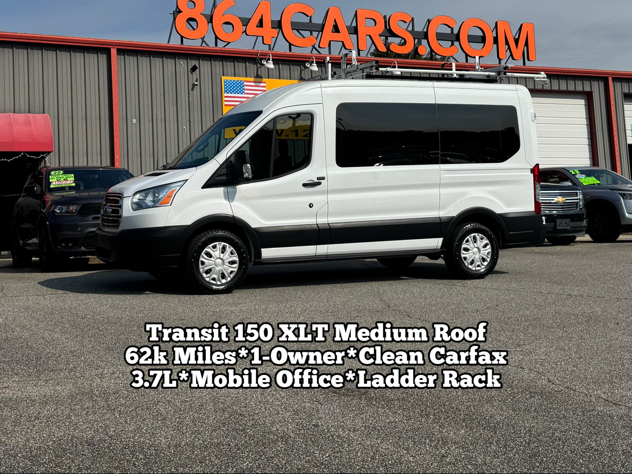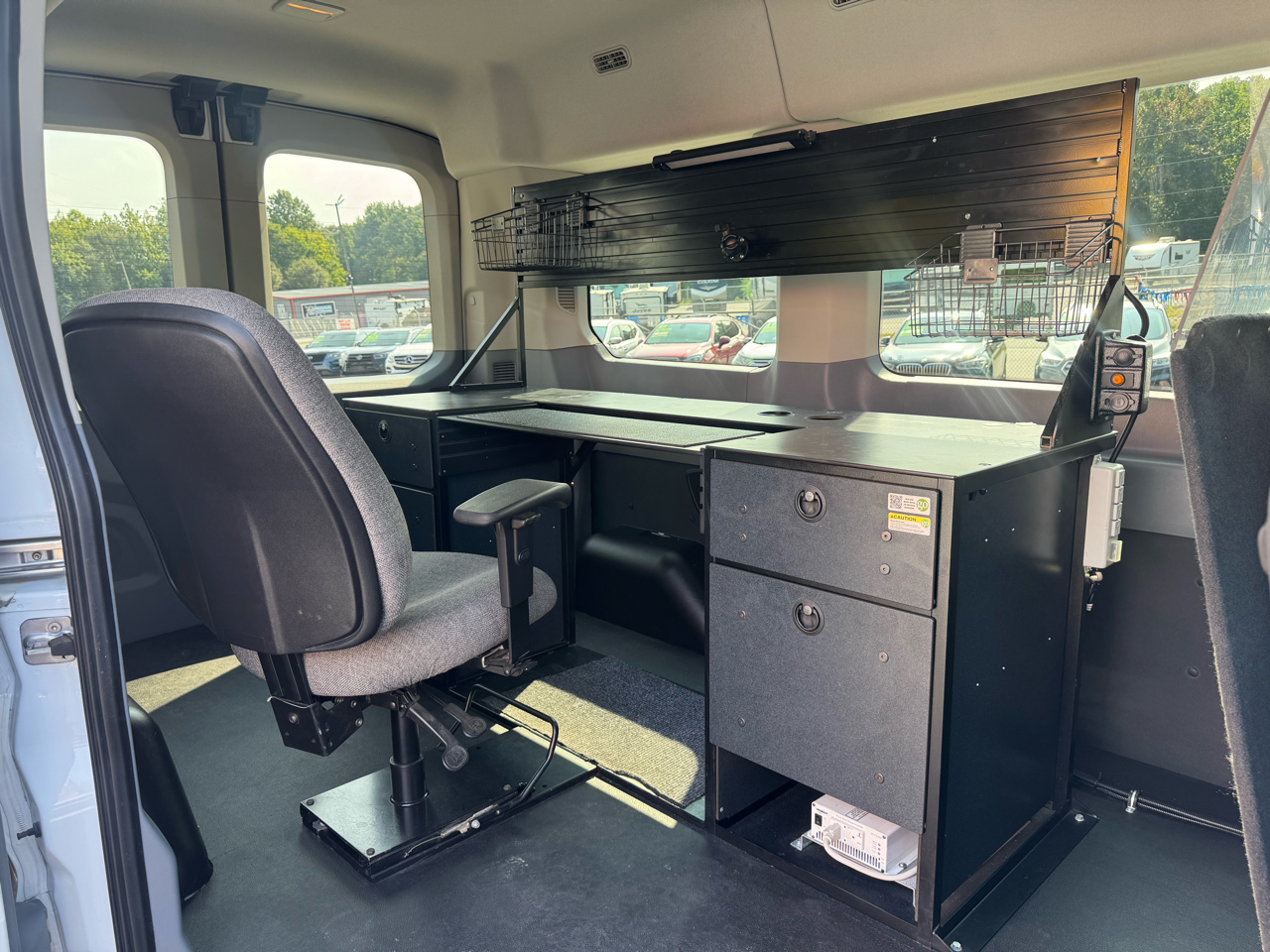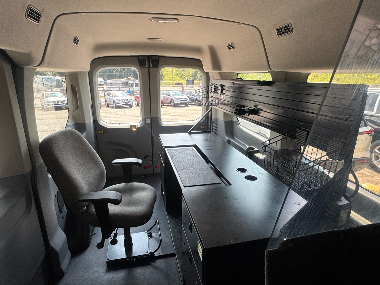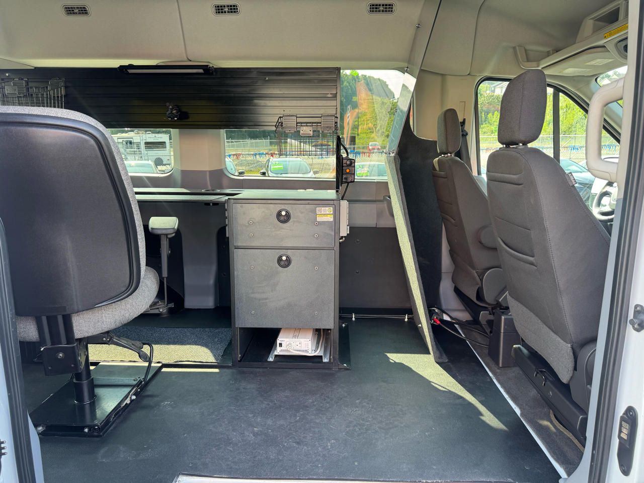 Mobile Office. 62,310 Miles. Carfax 1-Owner. Clean Carfax. 3.7L V6 Engine. Automatic Transmission. Prime Design ErgoRack Ladder Rack. Preferred Equipment Package 302A. Builders Prep Package. Passenger Side Sliding Door. Running Board. Mobile Office. Full Desk. Swivel Chair. Monitor Mount. Power Inverter. Plexiglass Divider. Rear Swing Open Doors. Nice Matching 235/65R16C Michelin Agilis CrossClimate Tires. 25 Gallon Fuel Tank. 3.73 Rear Axle. 8550# GVWR Package. Heavy Duty Alternator. Dual Heavy Duty Batteries. Keyless Entry Pad. Power Heated Drivers Seat. Heated Mirrors. Automatic Headlights. Lane Keeping. Steering Wheel Controls. Handsfree Wireless. Microsoft SYNC. USB/12V Ports. Front & Rear Climate Controls. Back Up Camera. Owners Manual. Keyless Entry w/4 Keys. Rubber Floor Mats.