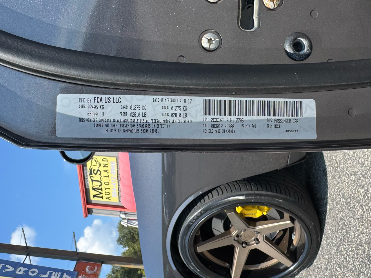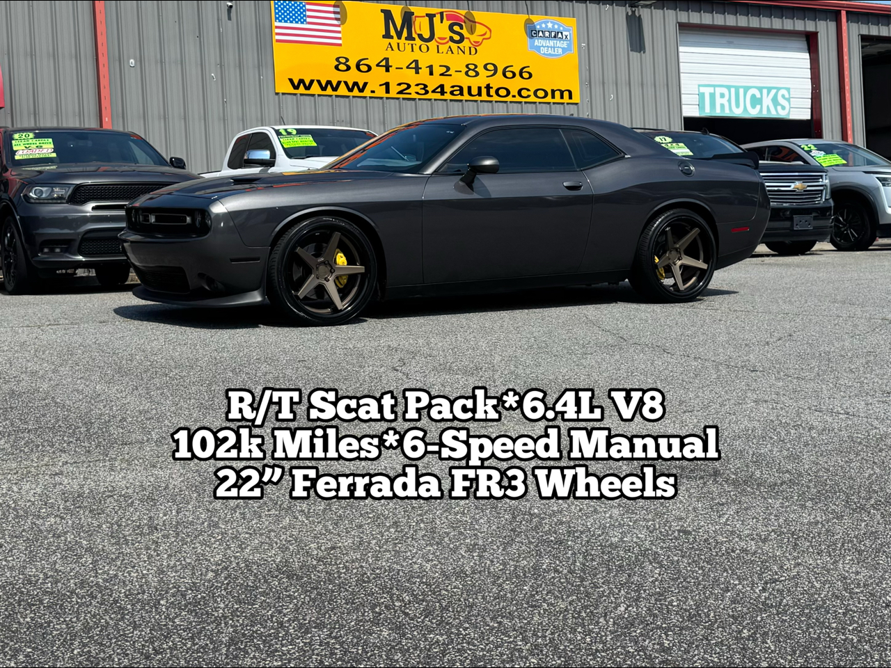 102,835 Miles. 6.4L 392 V8 SRT HEMI Engine. 485+ Horsepower. 6-Speed Manual Transmission. Mopar Intake. Bilstein High Performance Suspension. Brembo 4 Piston Brakes. Yellow Calipers. Power Driver/Passenger Seats. MFR Engineering Rear Diffuser. Active Dual Exhaust. 22" Ferrada FR3 Matte Bronze Wheels. 265/30ZR22" Tires. Black Fuel Door. Heated Mirrors. Automatic Projector Headlights. Houndstooth Scat Pack Logo Cloth Seats. Alpine Stereo. 8.4" Touchscreen Stereo. Bluetooth. Apple CarPlay & Android Auto. Satellite Radio. Dodge Performance Pages. Wi-Fi. Sport Mode. Super Track Pack. Dual Climate Controls. USB/AUX. Back Up Camera. Park Assist. Keyless Entry. Owners Manual.